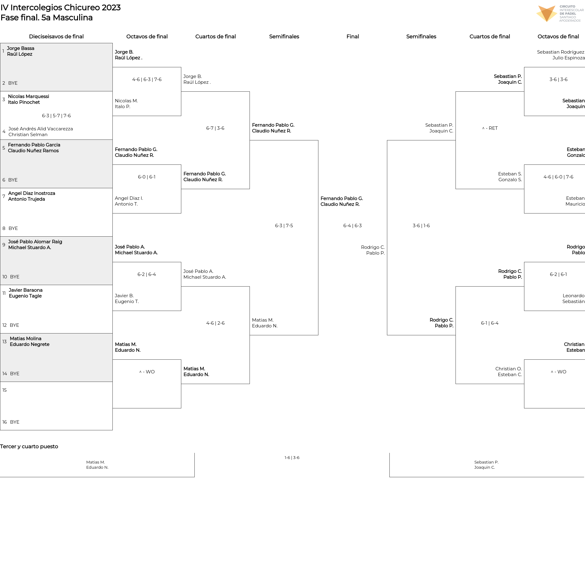 Competición de Pádel . Circuito Intercolegios Chicureo 2023